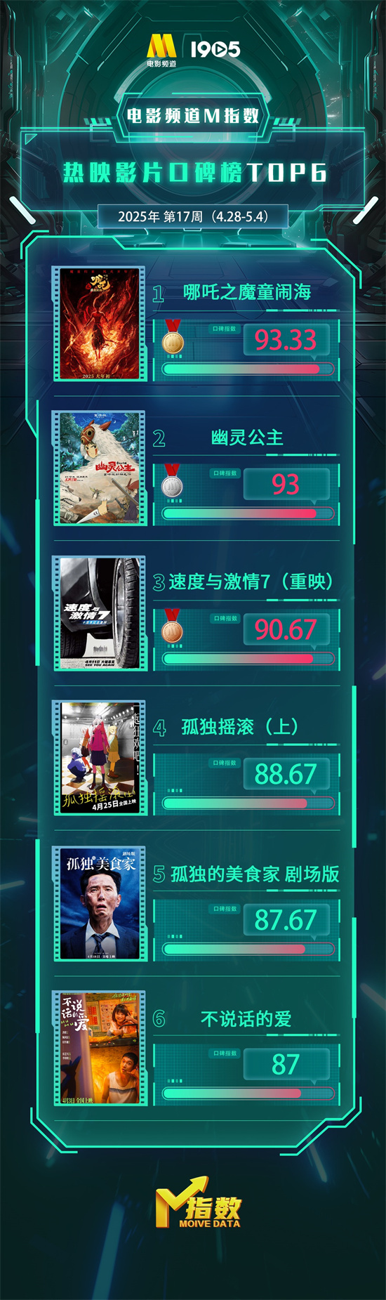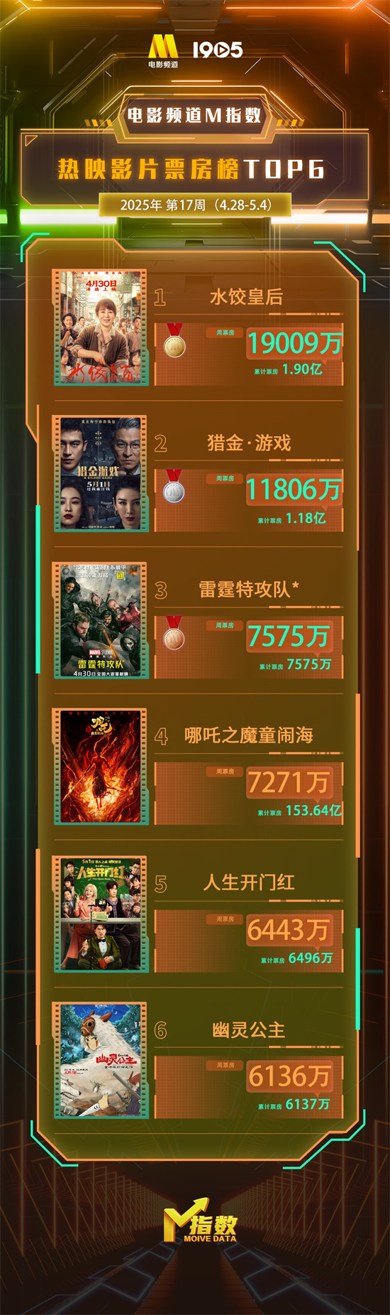 电影频道M指数2025年第17周(4.28-5.4)发布