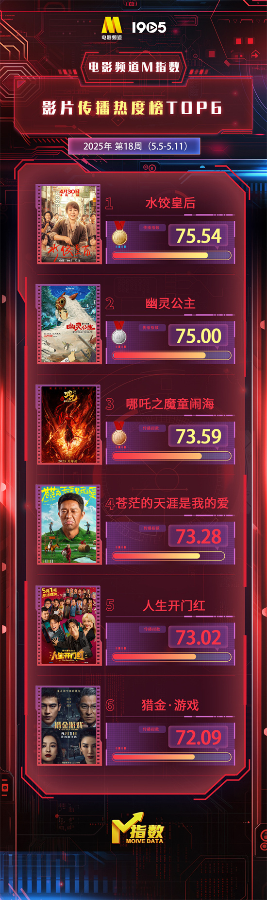 1905电影网讯 “电影频道M指数”2025年第18周结果发布。