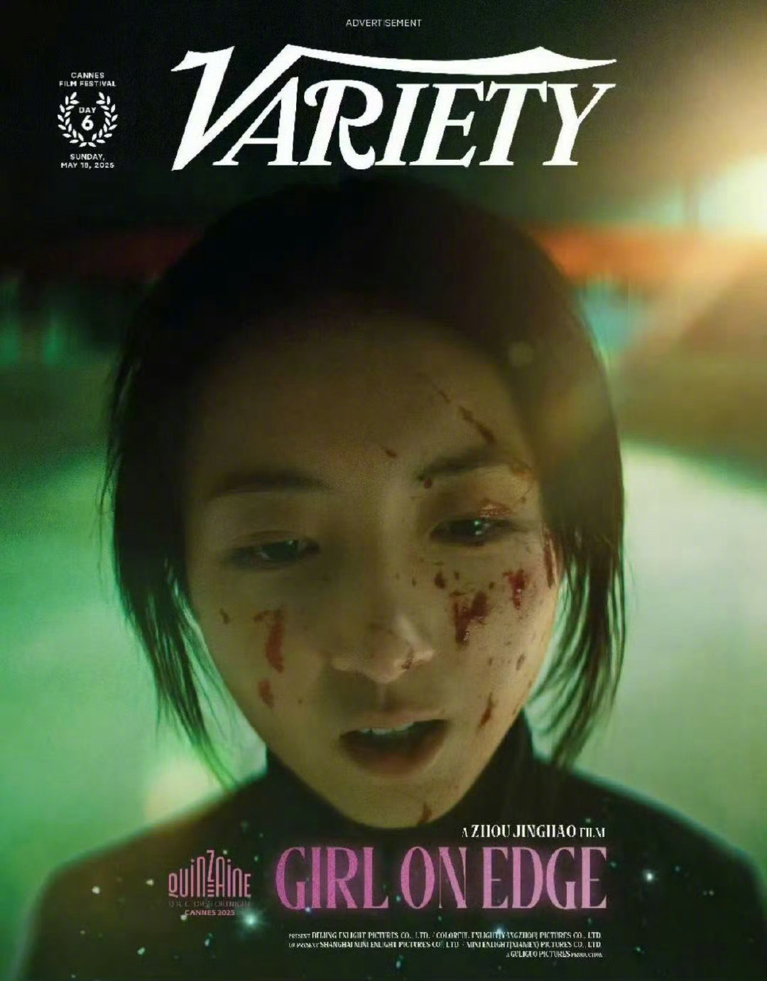 1905电影网讯 日前,电影《花漾少女杀人事件》登上《综艺》(Variety)第六日场刊封面,张子枫的面部特写成为主视觉,她眼神幽暗而空洞,喷溅到苍白面容上的鲜血尤为刺眼,呈现出惊悚的氛围。