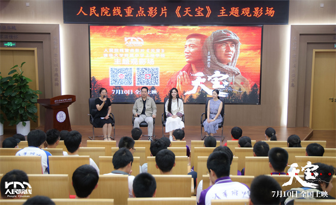 6月9日,导演刘劲携主演卓依娜姆、总制片人尔玛依娜等主创团队,亲临北京中华电影院与清华大学附属中学上地学校。映后交流环节,导演刘劲讲述了天宝的真实事迹:“我们拍的,不是一段传奇,而是一种信仰的传承,是人类面对苦难时最光辉的选择。我们希望通过天宝的成长,展现红军长征的壮烈与深情,呈现那个时代年轻人面对理想和信仰时的选择与坚持。”